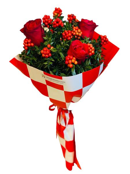Siyah Kağıtta 15 Vip Kırmızı Gül Buket